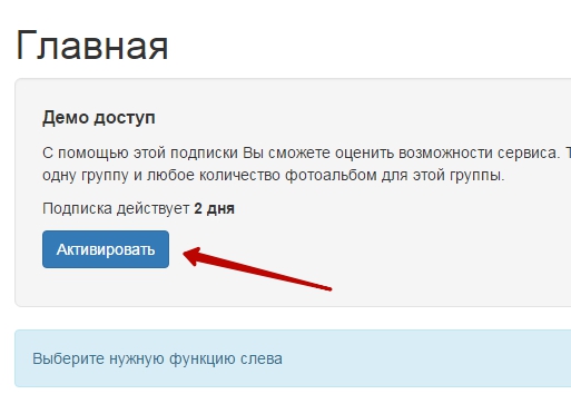 Как видно из рисунка, после регистрации вы получаете возможность оформить демо-подписку и опробовать наш сервис бесплатно в течении 2 дней. Для этого всего лишь надо нажать на кнопку “Активировать”.