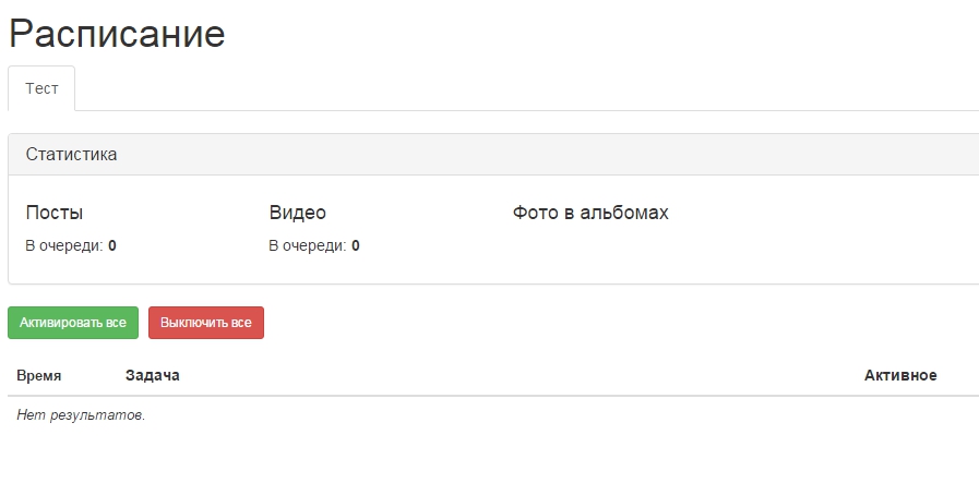 Теперь зайдем в расписание и создадим позицию отправки фото в альбомы: