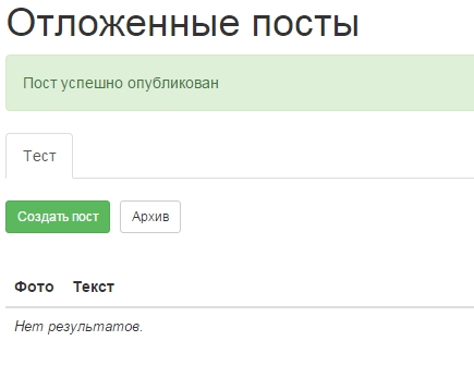 После этого пост из очереди должен исчезнуть и должно появится сообщение об успешной отправке поста в группу:
