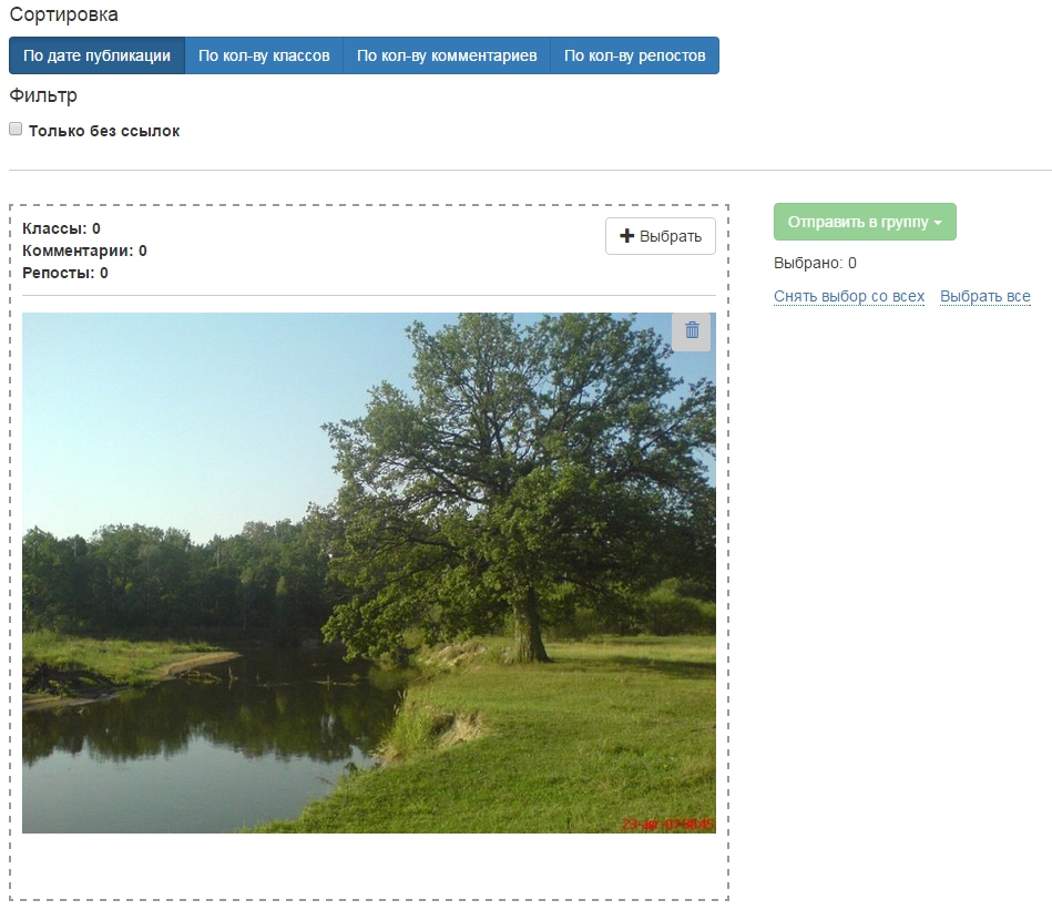 Давайте загрузим одно фото и попробуем отправить его в группу: