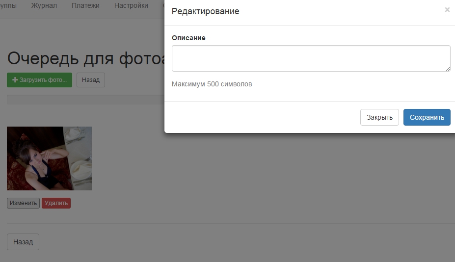 После загрузки мы можем удалить это фото, так же можем отредактировать описание, которое так же отправится вместе с фото.