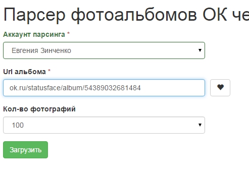 В принципе он ничем сильно не отличается от парсера постов: выбираем аккаунт, вводим адрес альбома, выбираем количество фотографий: