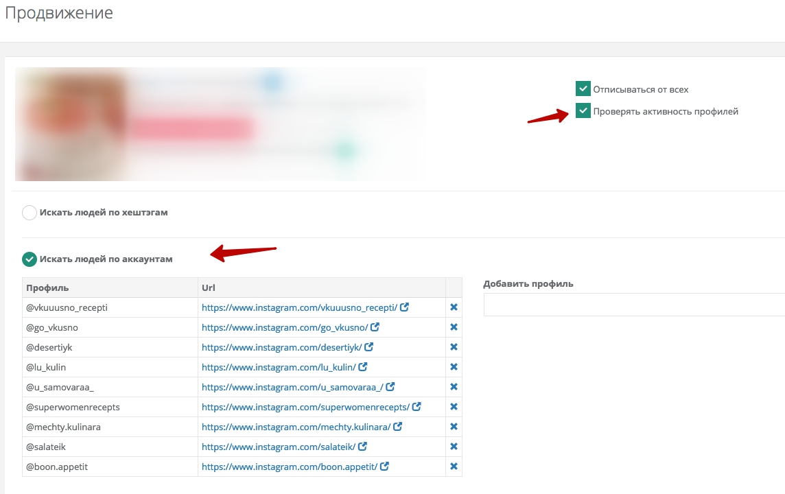 2. Так же мы добавили еще возможность продвижения ваших аккаунтов по конкурентам. То есть, ваш аккаунт будет подписываться только на те аккаунты, которые подписаны на ваших конкурентов.